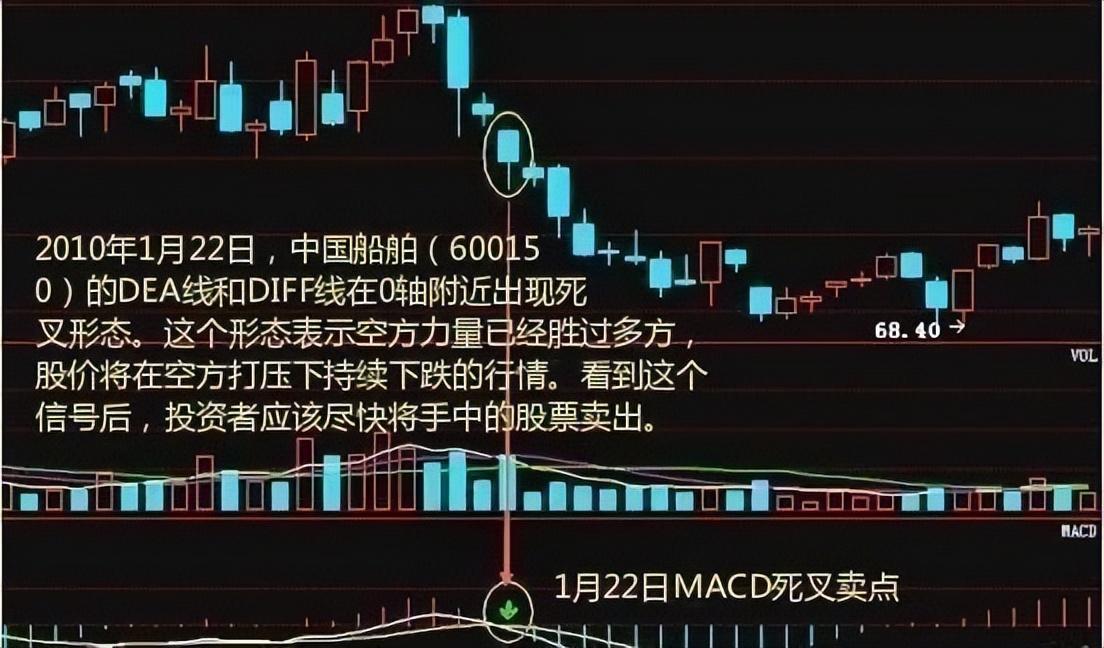 (1)MACD死叉出现在0轴附近时,表示多方胜过空方的同时市场行情由升势转为跌势。这个位置死叉形态的看跌信号强度要超过0轴下方的死叉形态。